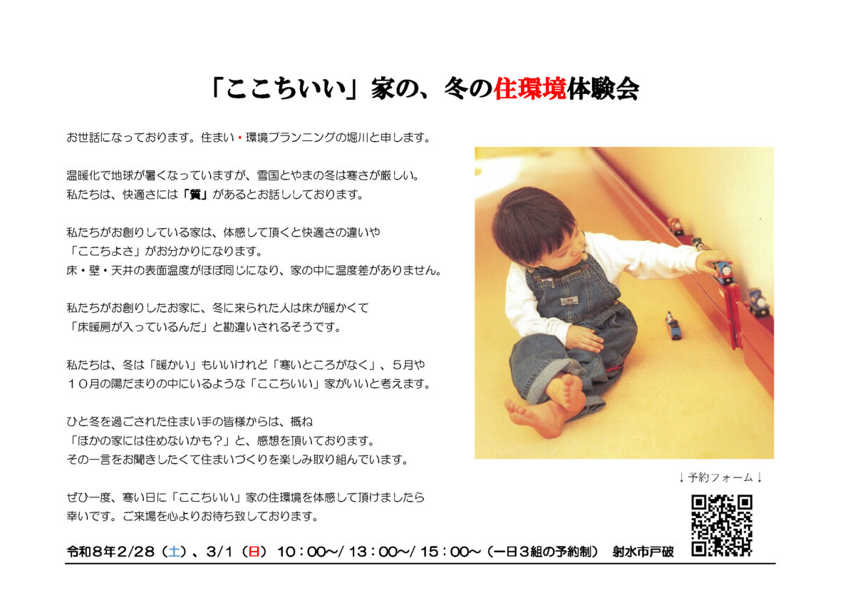 この度、除湿型放射冷暖房システムを採用し、エアコンに頼らないお住まいの見学を開催いたします。